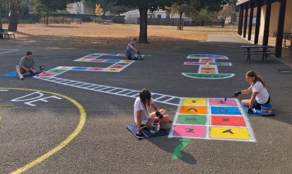 A la fin du mois d’août, Louise, Léana, Emma, Maïana, Maël, Léa et Maëlle, avaient comme objectifs de repeindre la cour, les murs et les bancs de l’école élémentaire et de terminer la ravissante maison de pain d’épices, tout en rénovant les visuels destinés à la sensibilisation lors d’octobre rose.